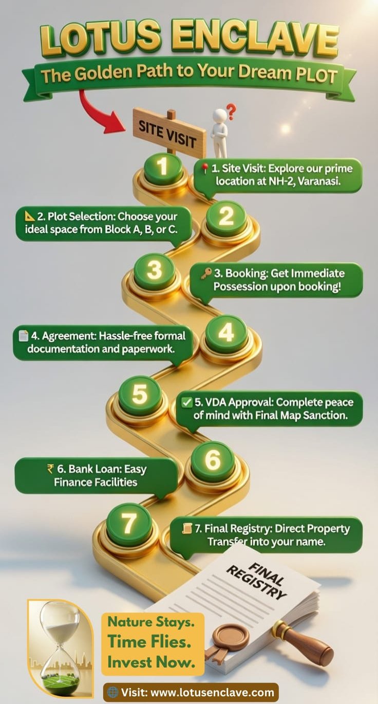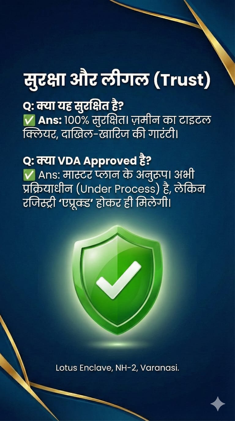 Varanasi’s premier 25-Bigha "VDA Approval in Process" township offering luxury Residential plots strategically located on NH-2, near Heritage Hospital. Experience a blend of modern living and spiritual serenity.