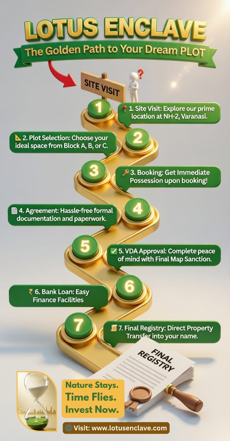Lotus Enclave is dedicated to redefining the landscape of the spiritual capital. We believe that an investment in land is an investment in your family’s future. By combining global development standards—honed through years of experience at top-tier firms like DLF—with local insights, we deliver projects that offer both luxury and long-term security. With Lotus Enclave, we are proud to introduce a new era of planned, high-end living in Varanasi, where modern amenities meet serene surroundings.