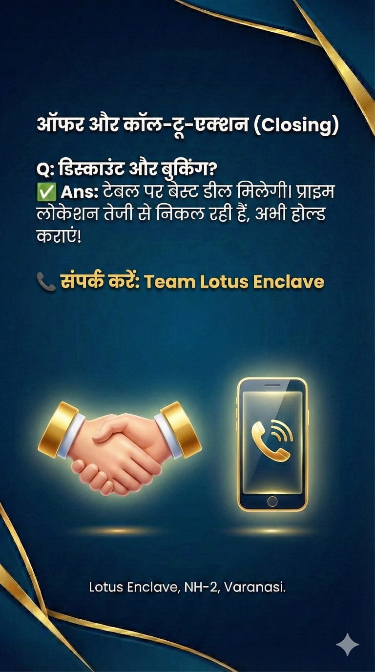 "Invest in Varanasi’s most promising 25-bigha township. Our experts will guide you through the Elite, Executive, and Value block options."