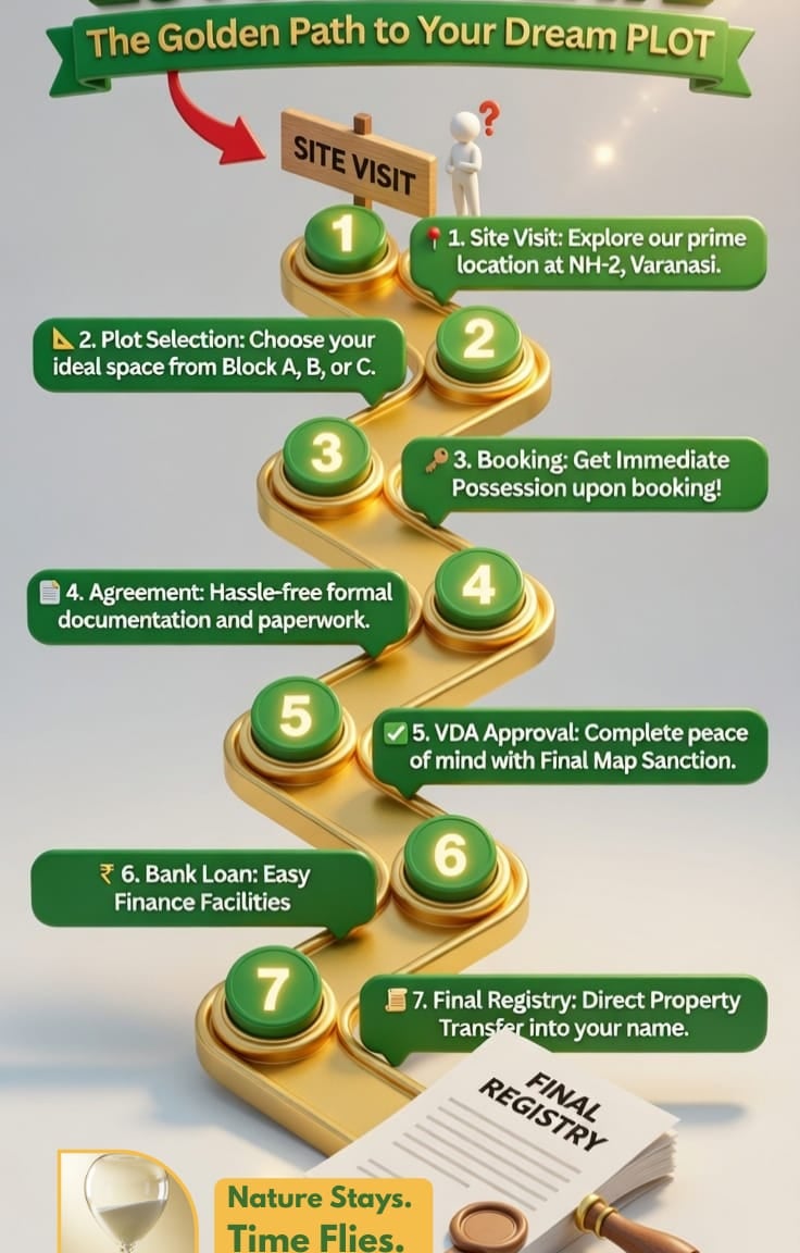 A: The VDA (Varanasi Development Authority) approval is currently in process. We maintain 100% transparency in all our documentation.